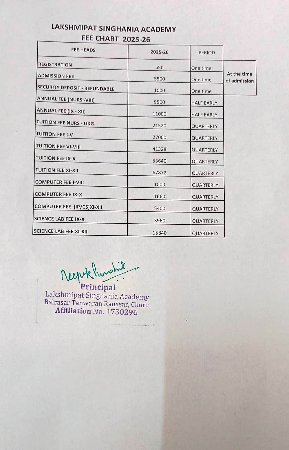 | 1 | NAME OF THE SCHOOL | Lakshmipat Singhania Academy, Ranasar Churu (Raj) |